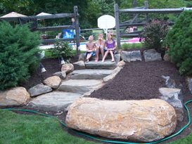 Hardscaping can be used to create a deck or patio, steps, walkways, stone paths, retaining walls, stone walls, boulder walls, complete outdoor kitchens, outdoor California rooms, decorative alcoves, seating areas, pool decking, and more. Call to ask about our creative poolside solutions!